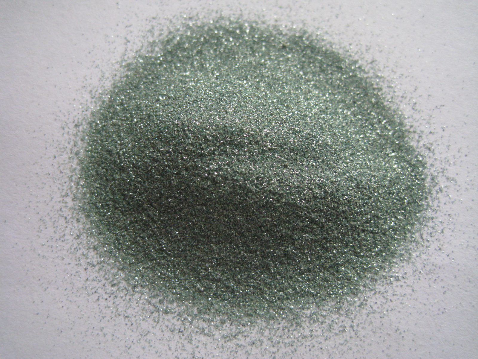 綠碳化硅是以石油焦和優(yōu)質硅石為主要原料,添加食鹽作為添加劑,在電阻爐內經高溫冶煉而成。呈綠色結晶,性脆而鋒利,并具有一定的導熱性和導電性。微觀形狀呈六方晶體,碳化硅的莫氏硬度為9.3,顯微密硬度為2940—3300kg/mm2,努普硬度為2670—2815kg/mm2,在磨料中高于剛玉而僅次于金剛石、立方氮化硼和碳化硼。密度一般認為是3.20-3.25g/cm3.碳化硅磨料的自然堆積密度在1.2--1.6g/cm3之間,比重為3.20~3.25g/cm3